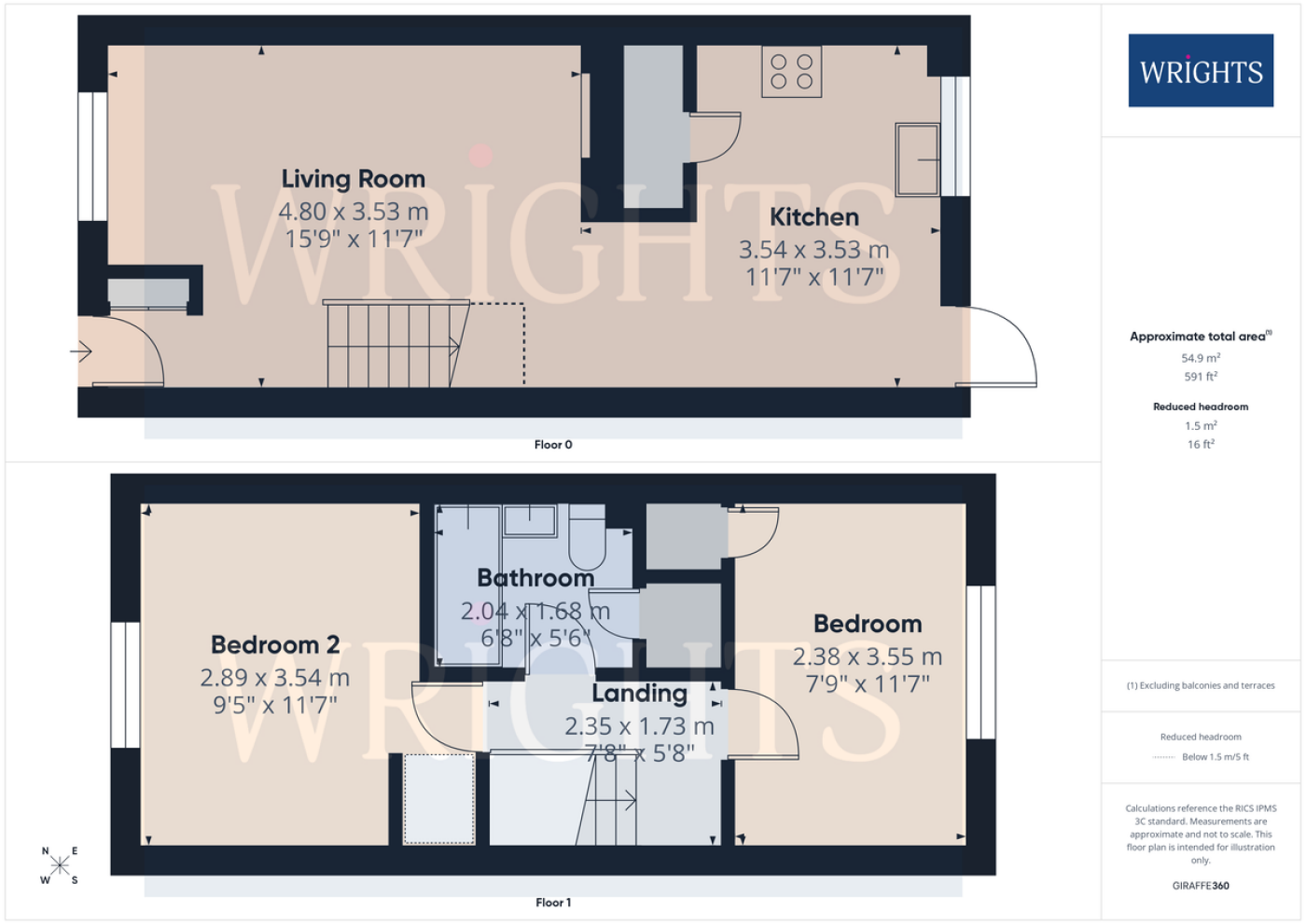 - 2 bedrooms