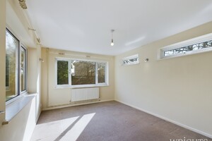 3.42m x 3.44m (11' 3" x 11' 3") A well proportioned bedroom that can easily accommodate a double bed, carpet flooring, gas radiator and large UPVC window and doorway leading out to a balcony overlooking the gardens.