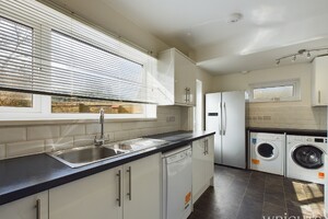 1.95m x 5.24m (6' 5" x 17' 2") Matching base and wall units with tiled backslash. Fitted items include a gas hob and electric oven while there is space and plumbing for a washing machine, dishwasher, fridge freezer and tumble dryer. UPVC window to the side aspect, vinyl flooring and UPVC door leading out to the gardens.